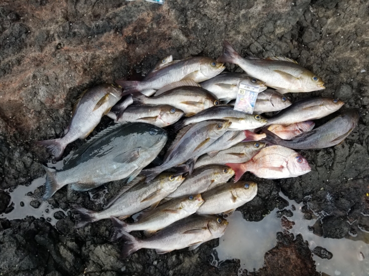 現在も、カゴ釣り・フカセ釣りでグレ、イサキが釣れており、特にグレに関しては、40cmクラスの尾長グレが混じってきます。