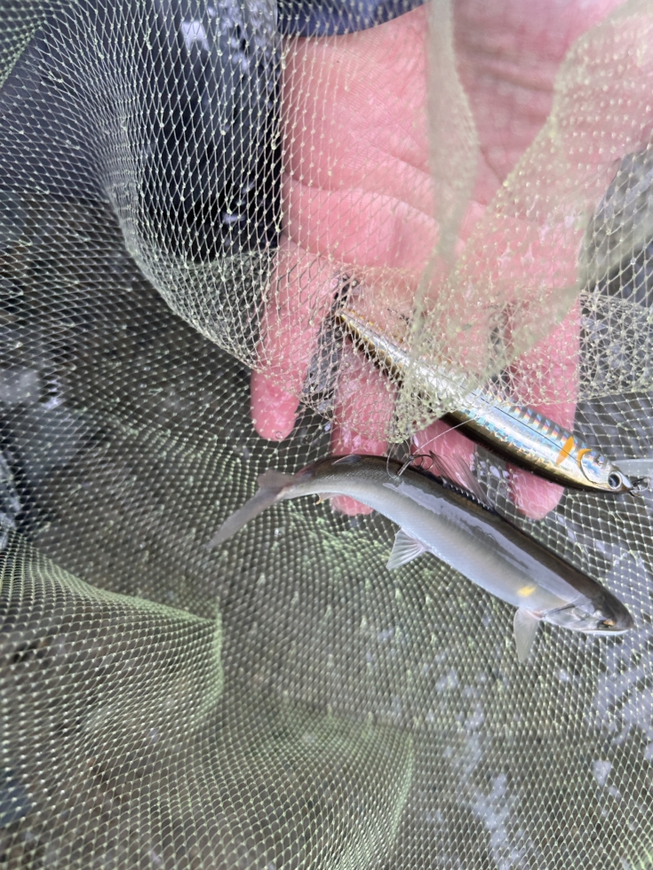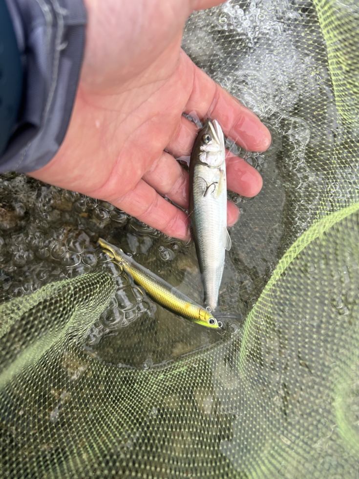 今後は恐らく数は減るものの、垢が付き、水温が上がってくると縄張りアユが増え、ガンガンに追う湖産鮎メインの面白い釣場になると思います。