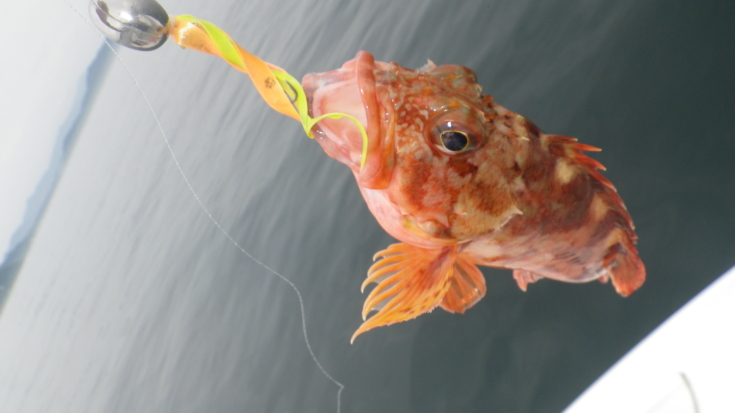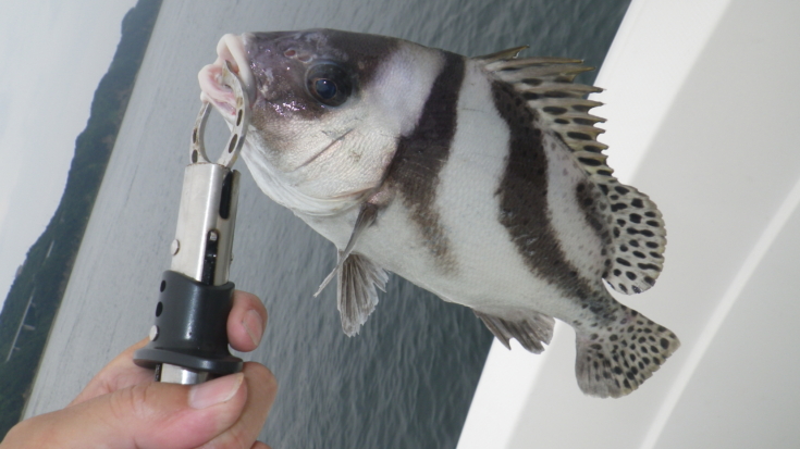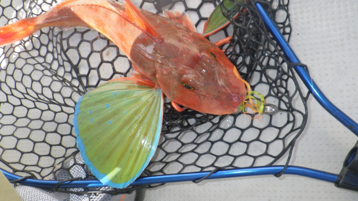 ゴンゴンとタイのアタリらしい?引き込みが続き、ラインの放出をしながら姿を現したのは、大きなホウボウ!
