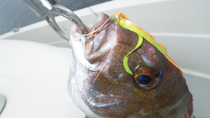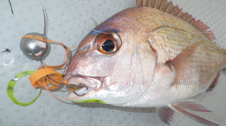 前回の釣行では波動の大きなネクタイが有利で、色はオレンジゼブラでした。