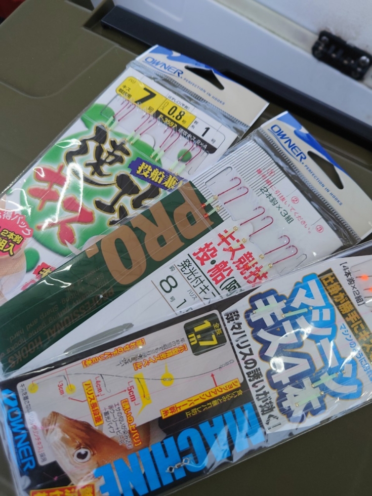 チモトの夜光留でアピール、段差ハリスで全掛けを狙いやすい仕様なので一気に数を伸ばしたい欲望まみれのチョイスです。
