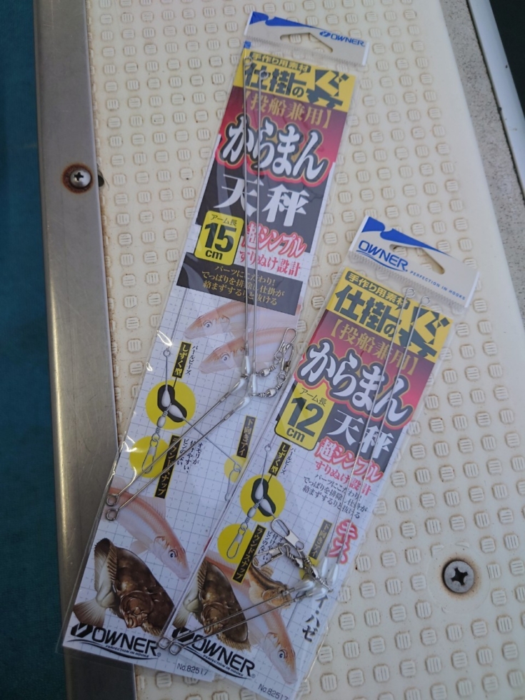 ここで投入するのは、マシーンキス3本ホタル仕込み。ショートロッド対応の本格投げキス仕掛なので全長1.3mと船キス釣りでも使えてしまうのです。