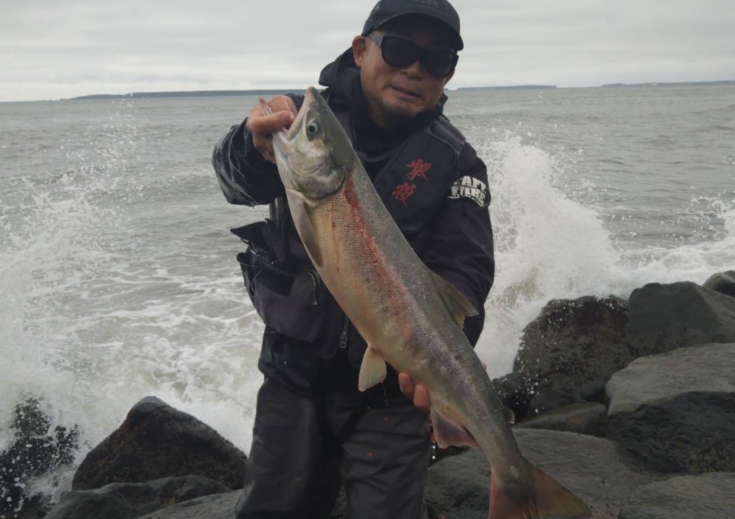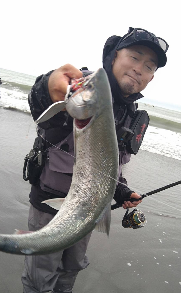 サケは石川県手取川での有効利用調査以外で釣ったことが無かったので、人生初の海でのサケでした。