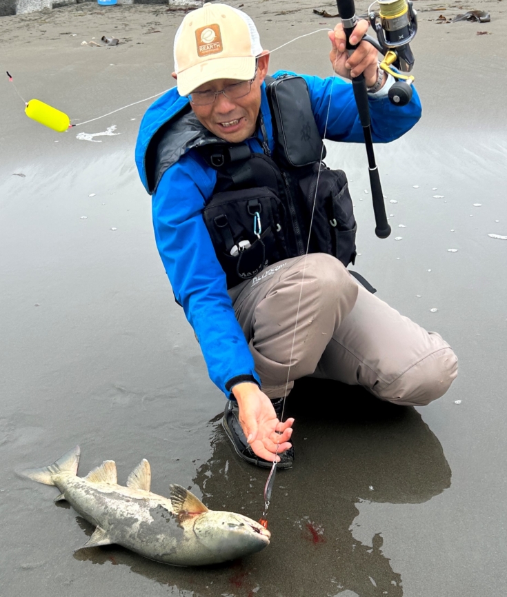 周囲に迷惑をかけたくなかったので、ドラグはガチガチでゴリ巻きし、最後は波に乗せてサーフにズリ上げ。