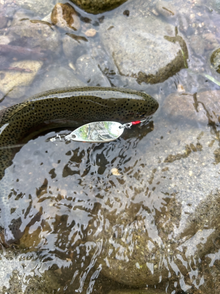 型は出ませんでしたが、ヒレピンの美しいニジマスが釣れ、アメマス混じりで楽しむことができました。