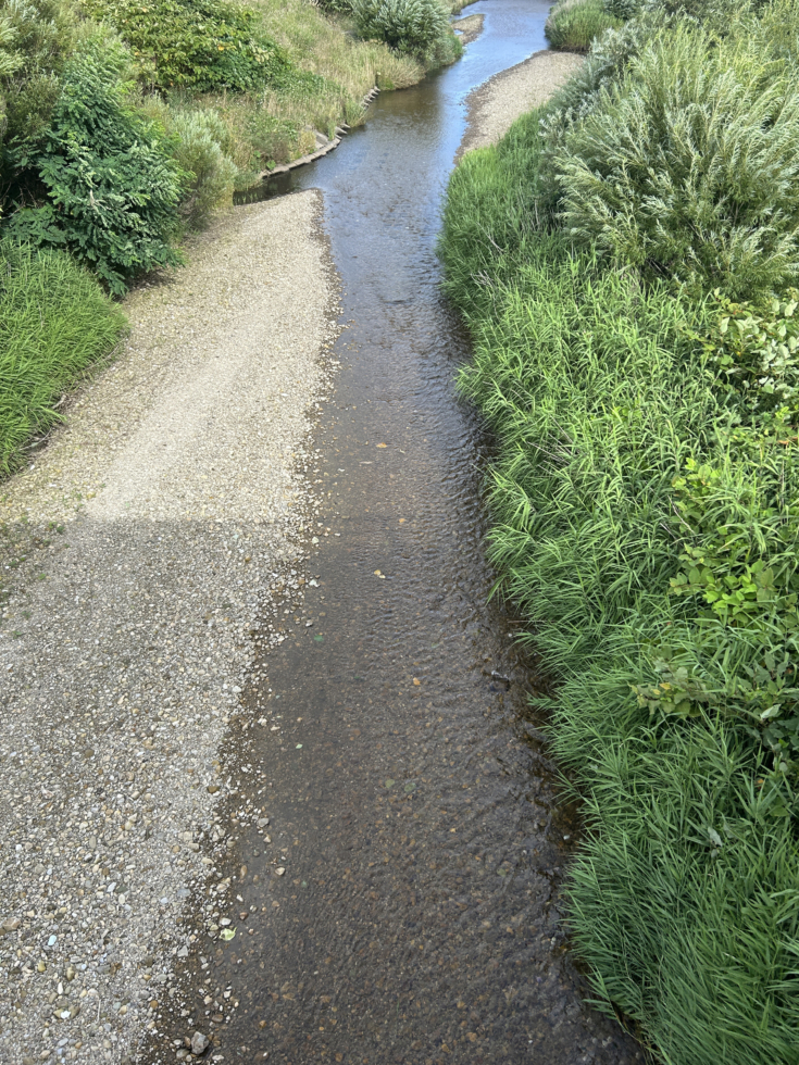 2時間近く川見を繰り返すと、川幅2mぐらいの小河川で鮎が見え、さらにその近くの川では数、型ともに申し分ない群れ鮎を見つけることができたので、その川にチャレンジすることに。