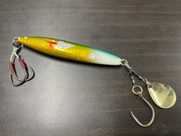 ルアー60g、フロントフックはライトツインアシスト、リアフックはSJ-41 #1
