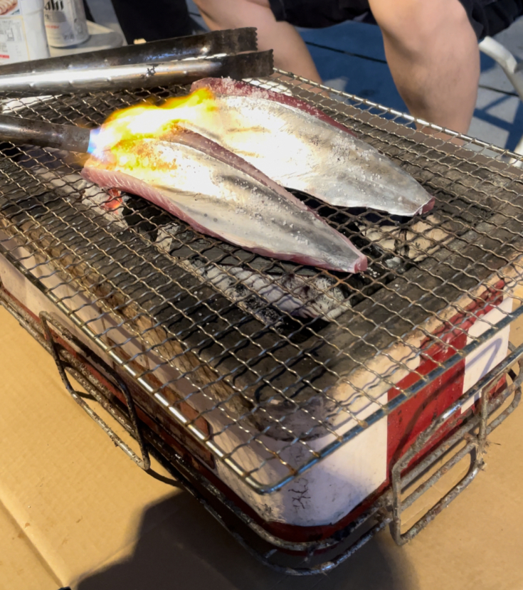 帰港後、あゆ丸船長宅でBBQをごちそうになりました。