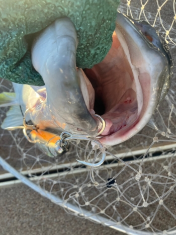無心にルアーをひいていると、チェイスなしのいきなりバイト!!