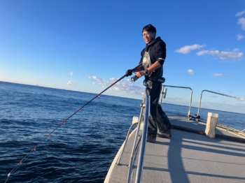 同僚2人は大物泳がせ釣りを。私は落とし込み釣りを選択。