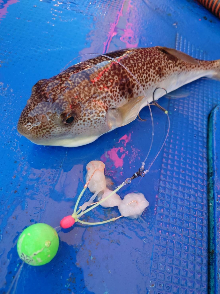 今シーズンのフグは良型が多く、お土産確保には数匹でも十分なボリューム。