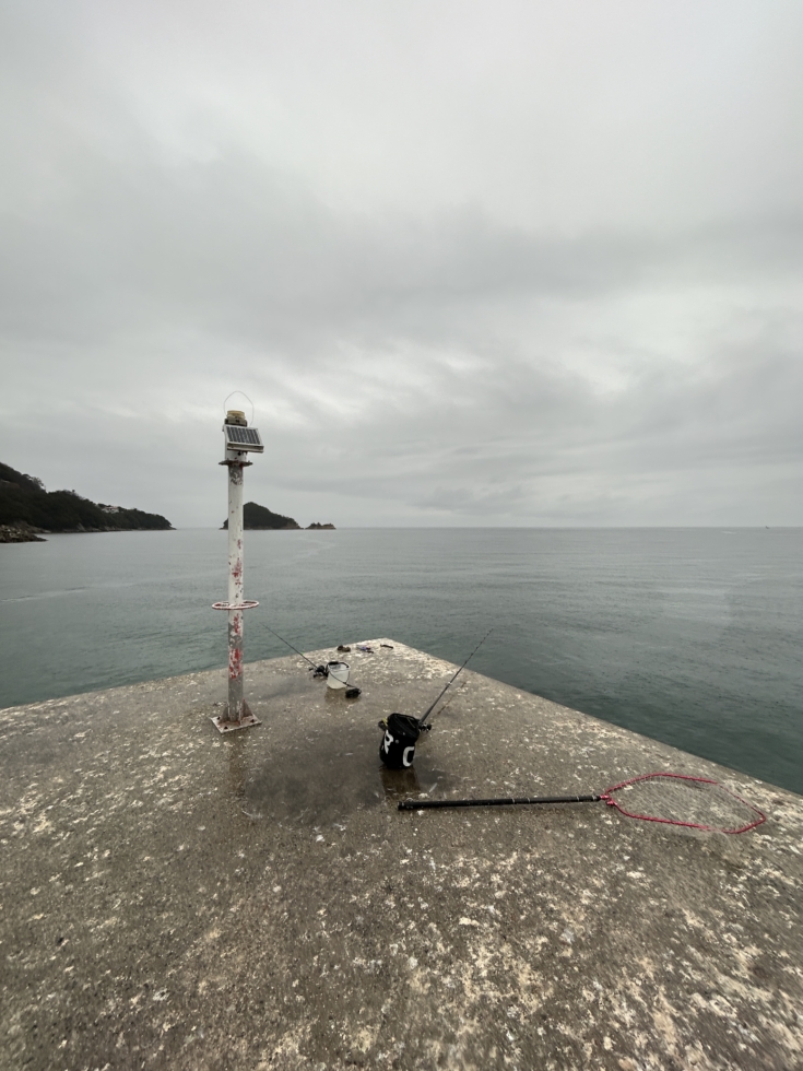 最終日は本降りの雨の中、メバルが濃かった漁港の外側を狙うことに。