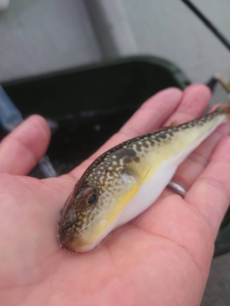 この時期は小型のフグが多いので、如何に小型を避けて、キープサイズを掛けて行くかが腕の見せどころ。