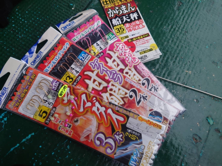 仕掛はアピール重視の夜光甘鯛2本でスタートしましたが、反応あるものの、掛けられる様な強いアタリは来ません。