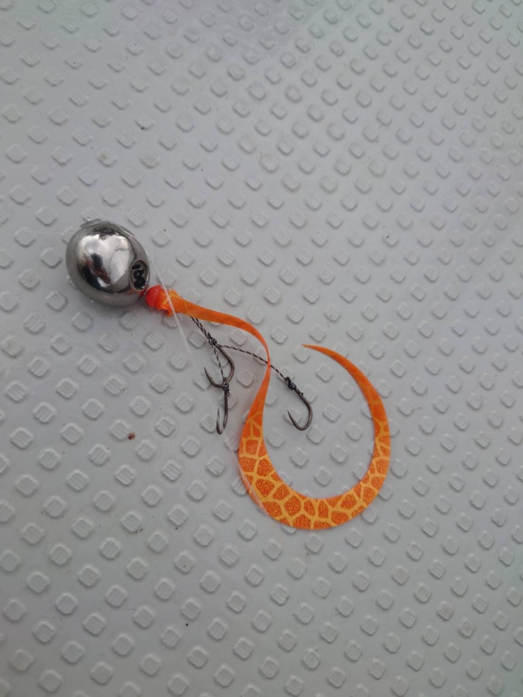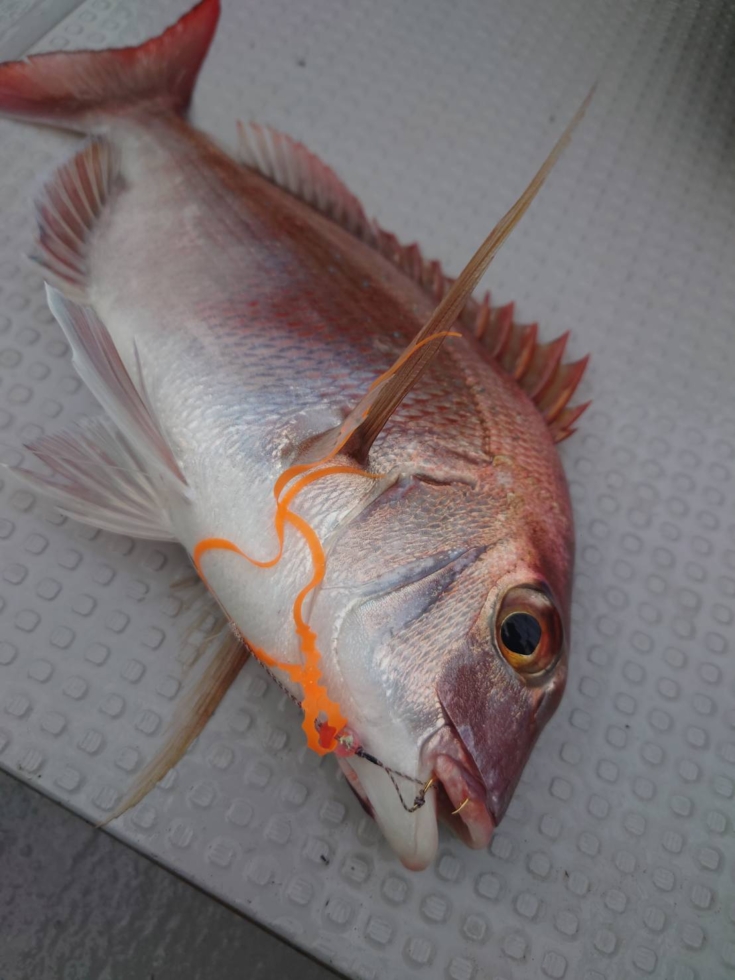 少し、潮が流れ出し1ノットを超えて来たので、ネクタイをチェンジ。オレンジ単色のシングルカーリーに。
