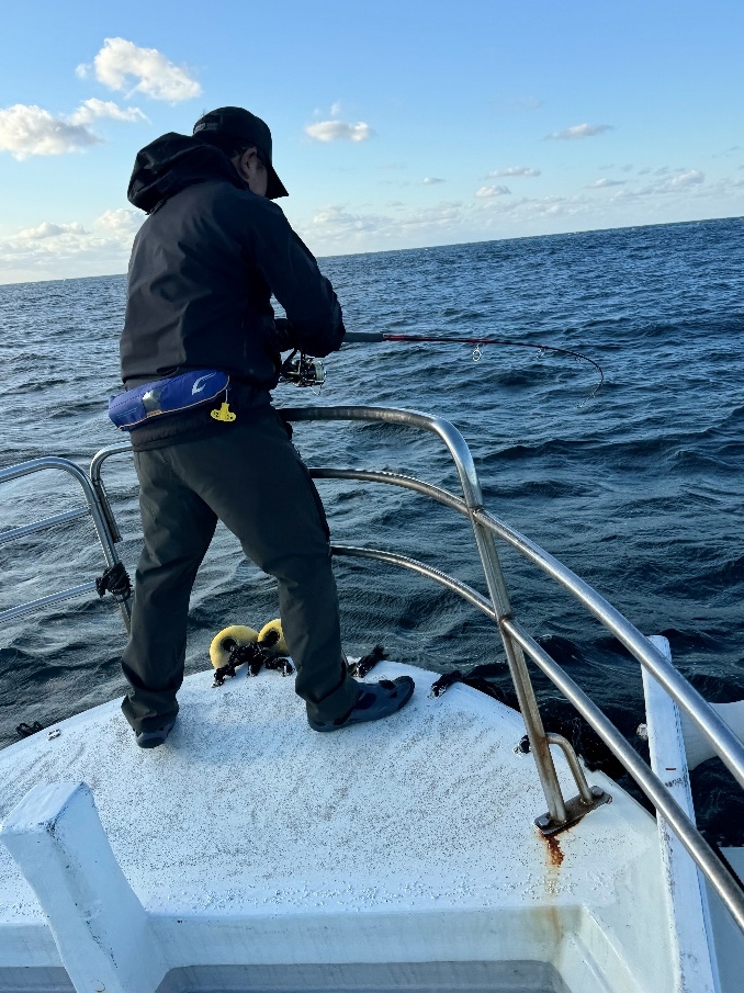 そして五島の果て、白瀬まできました。白瀬は2年半ぶりです。水深100mから流していきます。皆は深いうちはジギングをしてました。