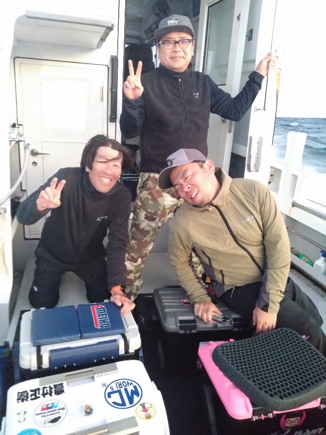 皆様、こんにちは!営業企画部の豊村です。今回は4月以来のヒラマサ釣行です。これまでに2回時化で流れ・・・ようやく出番がやってきました。今回は釣友の武雄市在住の千春君のチャーターにお邪魔し、メンバーはルアパラ九州TVでお世話になってる上原さん、ブルーウォーターハウス当社仕入れ担当のKENTA君とそして千春会会長の千春君の4人です。何気に上原さんとは収録ではご一緒してますがプライベートでは初めてでこの日を楽しみにしてました。
