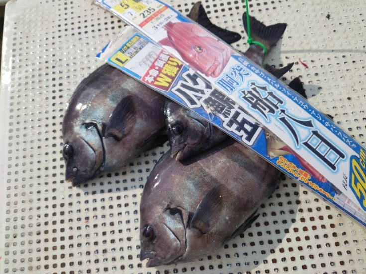 ポイントの水深は30m前後で、オモリは50号(乗る船により指定号数変わります)ピンポイントで流すので、他船とぶつかるかと思われるような距離で釣りをする事もあります。