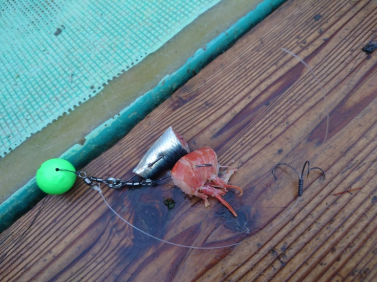 餌はイワシぶつ切り&赤エビで反応をみてみて、赤エビは、餌が少し残って上がって来るので、殻付きの赤エビオンリーでやってみる事に。