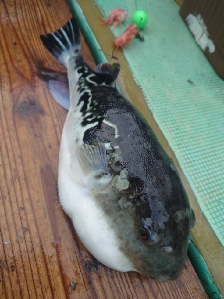 合わせを入れると、コンコンと首を振る引き、コレは外道な気配。残念ながらサバフグでした。