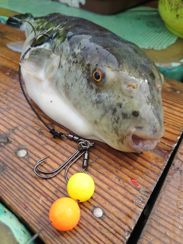 散発ながら強めのアタリを掛けるとサバフグ・・・