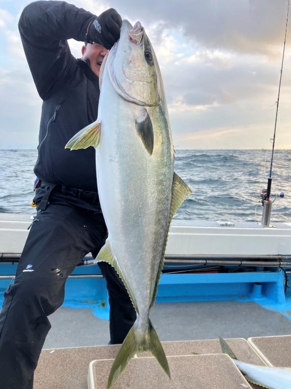 このドラグの出方・・・10キロオーバーや!と心の中で思い久々のジギングでのやりとり…船酔い…足がおぼつきません。この日風と潮が同調して魚が船底に入り右舷から左舷に回り込むのに常岡さんから介護されどうにか・・・。