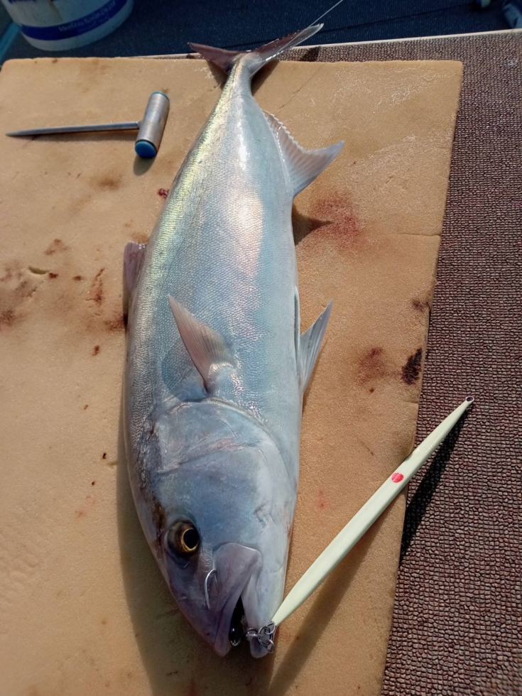 最近の釣果ではまだ水温が低く、魚がトップへの反応が薄く、ジギングでの釣果が良いとの事でした。