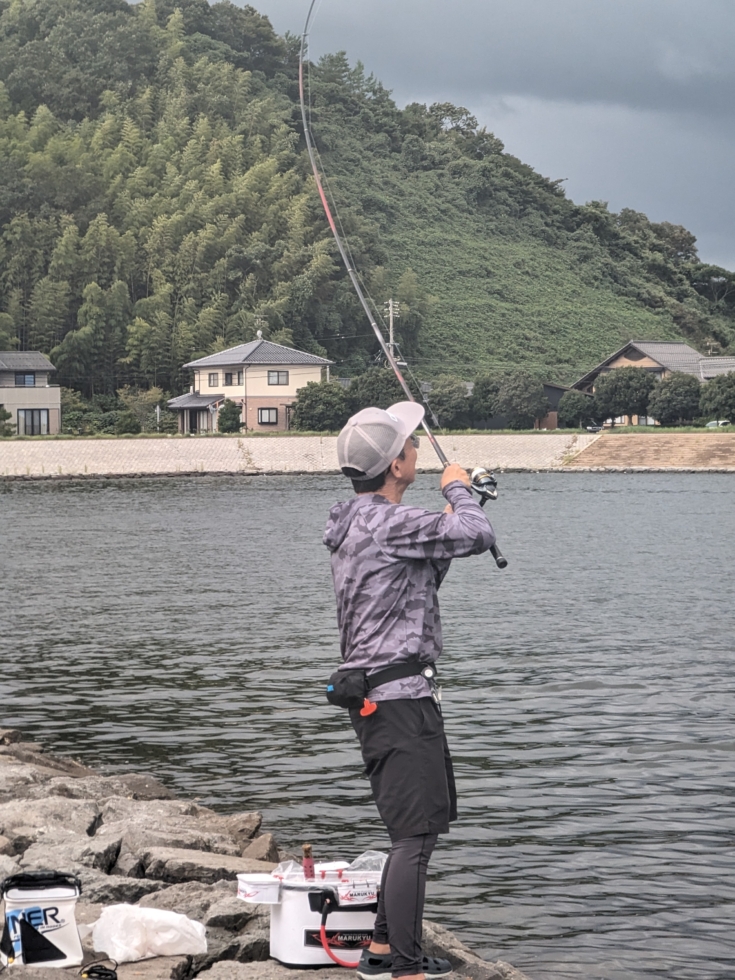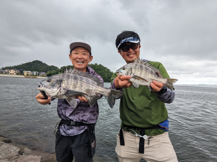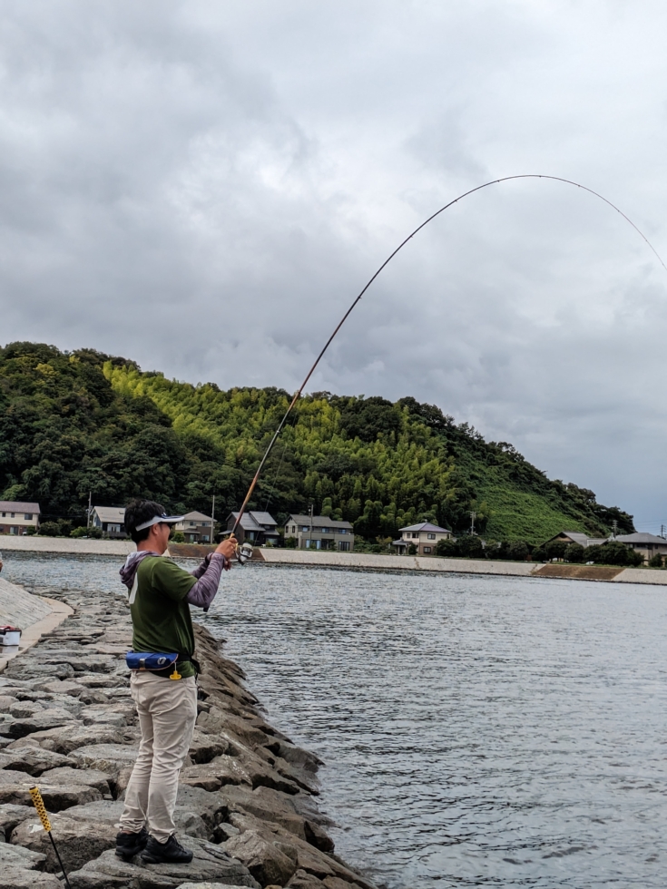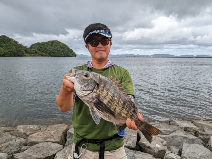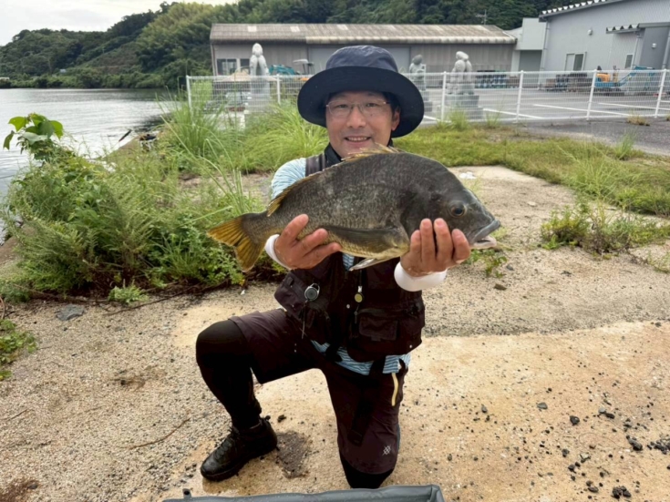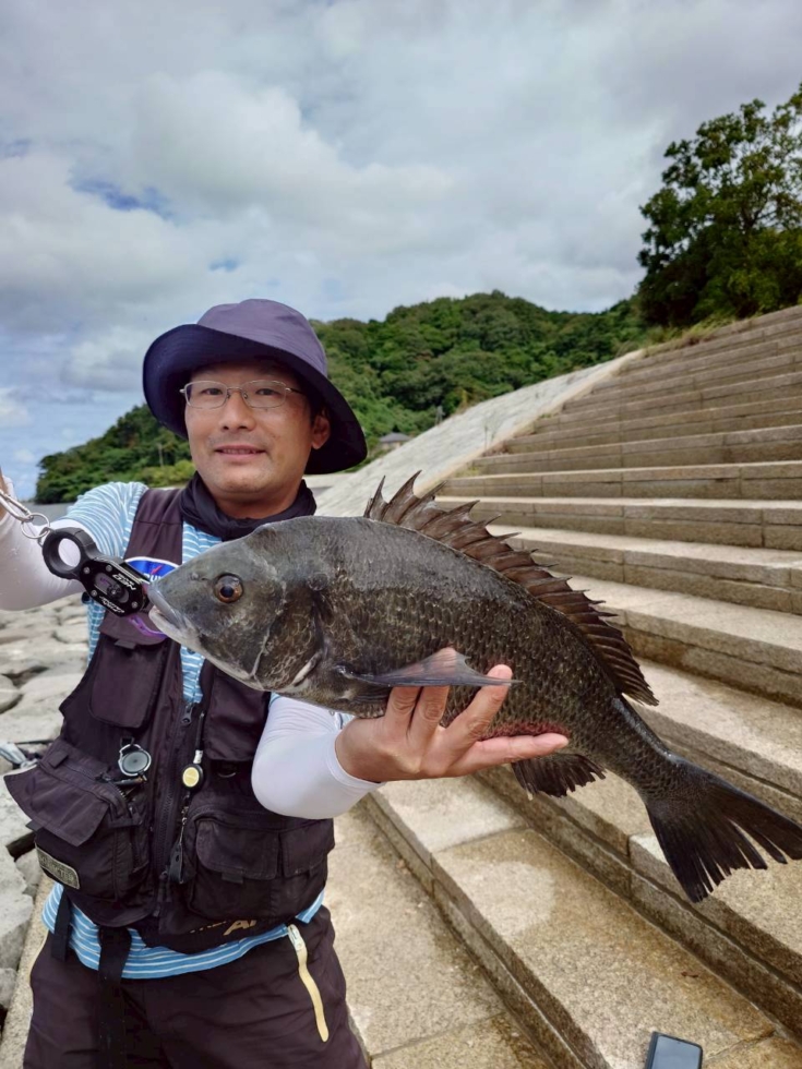 ポイントへ着いて直ぐ、岩崎さんが40cmオーバーのチヌを釣り上げます。