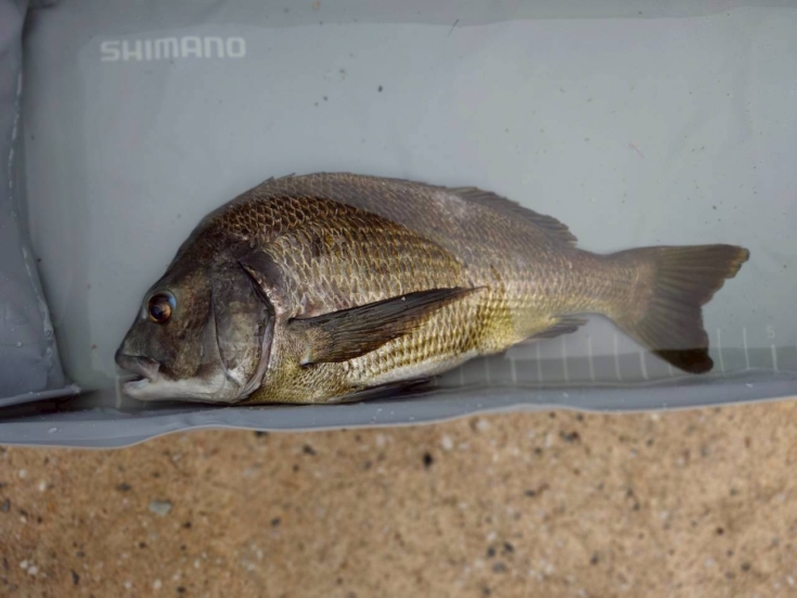 これでリズムを掴めてきたのか、私にも良型のチヌが連発しだし、最大で49㎝を釣ることにも成功。