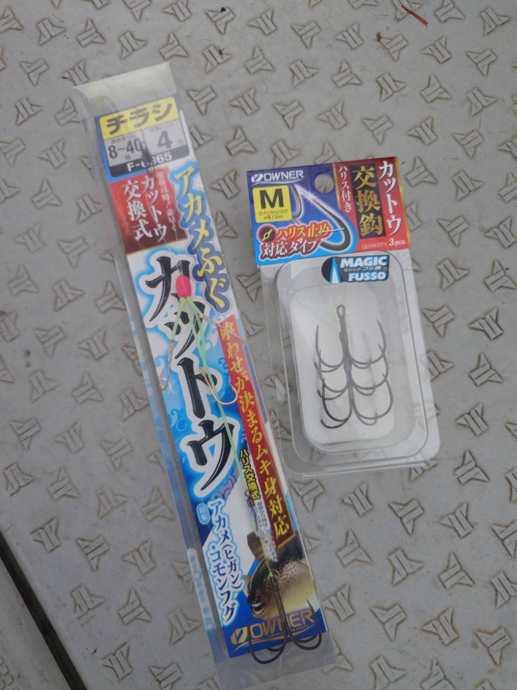 スタートは、『アカメふぐカットウ仕掛セット』チラシ&カットウシンカー丸錘10号で。