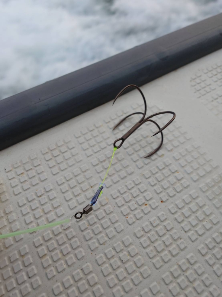 宙でステイするので全方向からのバイトに対応出来る4本鈎の『掛獲4本』を使用。