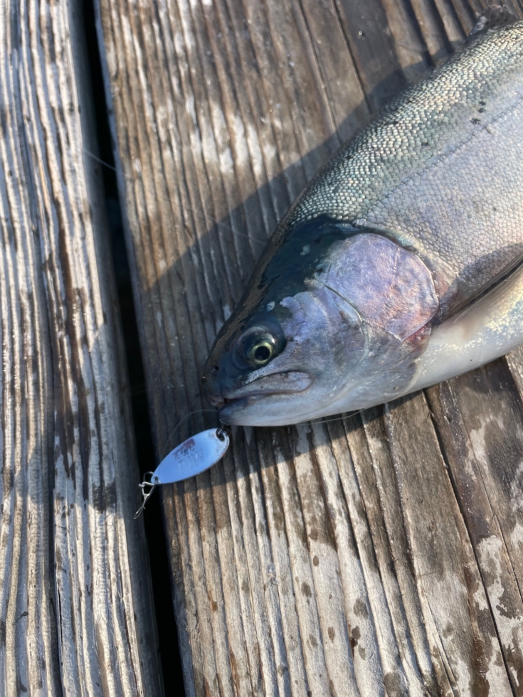 そこからは、同行者でスプーンが得意な人がポロポロ釣り、難しい状況へ。