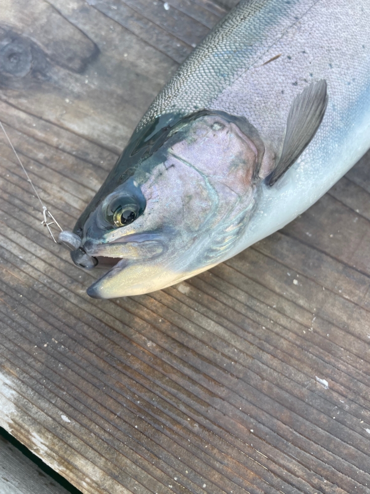 魚のスレ具合に合わせて、鈎(ジグヘッド)の重量を軽くしていきます。