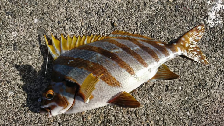 上がってきたのは自身初フィッシュとなるタカノハダイでした!