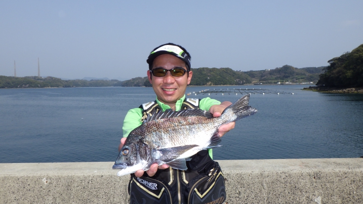 すると1投目で道糸が走るアタリ。細い針ですが曲がるなどのトラブルなく上がってきたのは40cmほどのチヌ。短い時間の釣りだったので凄く嬉しかったです。