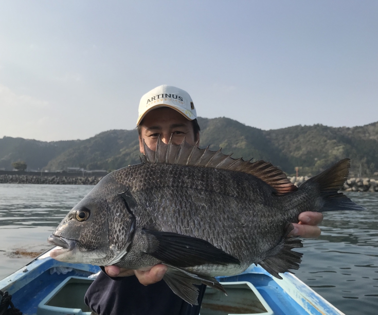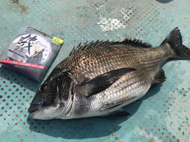 ●釣行日:2018年4月3日 ●お名前:名古屋市 佐藤 ●ポイント(場所):三重県紀伊長島海野 ●使用商品名・号数:ライン:ザイト筏カカリ2.5号 ハリ:ウルトラ競技チヌ5号 ●魚名:チヌ ●全長:49.5 cm ●重量:2 kg