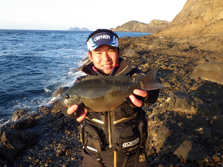 前日までの寒波と時化が影響してか?グレの活性がひどく悪い。エサ盗りの動きもイマイチ。昼までに30cmのグレを2枚という超大貧果。