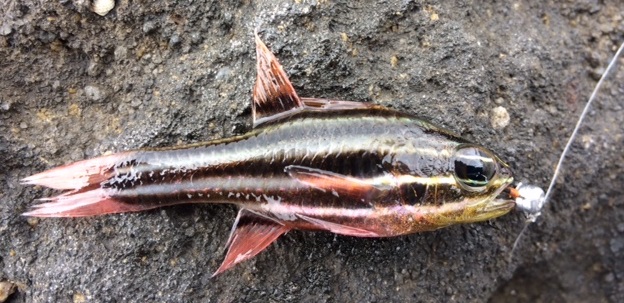 エサはイシゴカイでミスジテンジクダイが釣れました