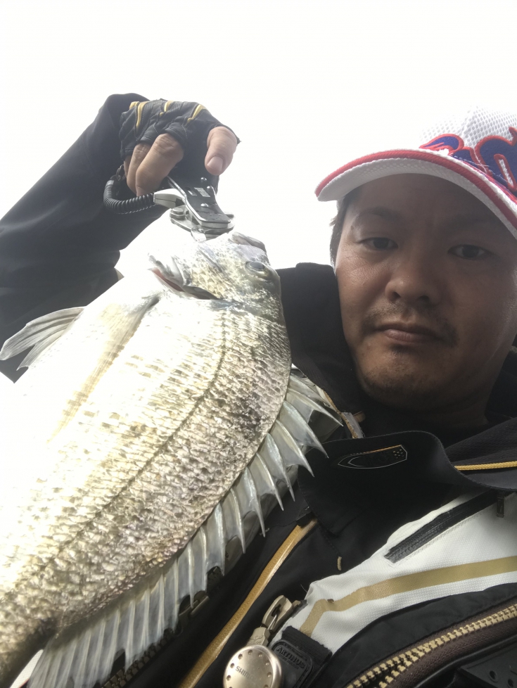 慎重にやり取りをし、タモに入ったのは42センチのチヌでした。