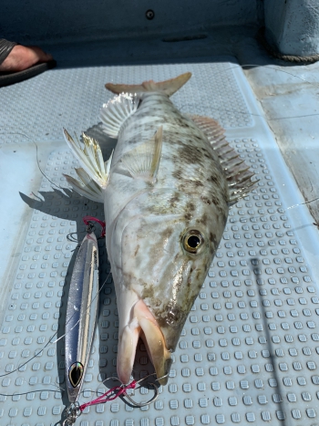残念ながら風向きと波が強く島影でライトジギングとなりました。