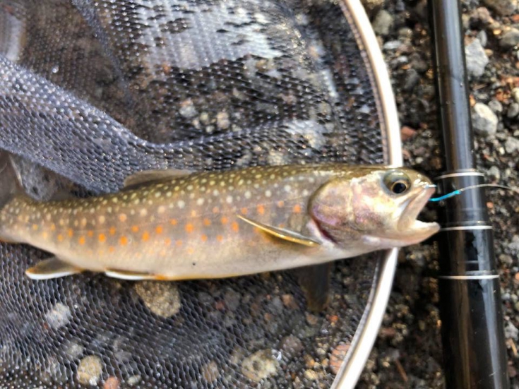 ピシッとあわせると、久方ぶりに見るイワナの綺麗な姿やはり鈎が良いと口にシャープに掛かる。