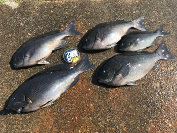 その後、尾長グレの30cmを追加したが波が高くなったのでお昼の納竿となる。