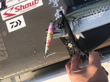 オフショアですが、ボトムから表層までベイトの反応が広範囲に出ており60グラムの撃投ジグでキャスティングで好反応でした。