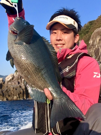 釣り開始直後に4ヒロのタナでアタリを捉えて、ファーストヒットから43センチの口太グレが姿を見せてくれました。