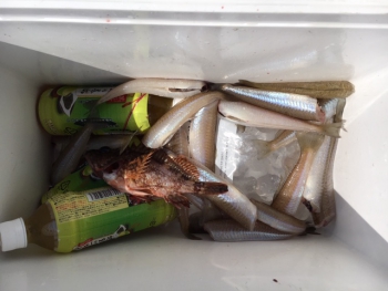 上がってきたのは20㎝近いキスでした。