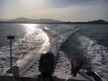 当日は朝5時に起きて、近くの釣具店にエサ(砂ゴカイと青イソメを各50gづつ)と予備に鉛付き天秤(8号)とキス・カレイ投釣2本(10号)を2セットづつ購入し、7時に船を置いてる港に到着し、エンジンを暖気してる間に仕掛けの準備をします。