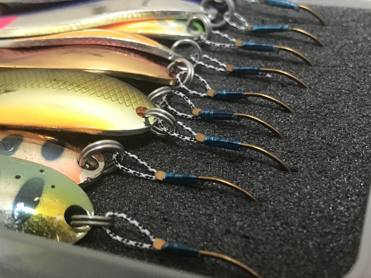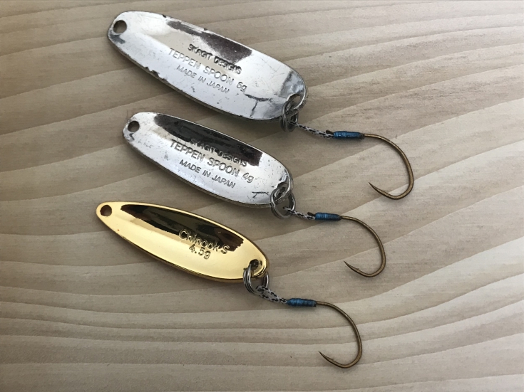 地元河川で成魚放流があったので、今年から使用するつもりで作成していたスプーン用シングルフック(本流キング)を試す為に釣りに行ってきました。
