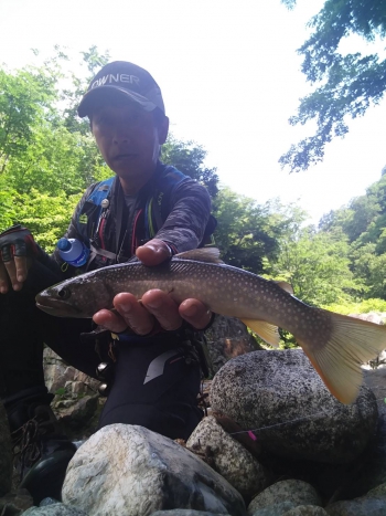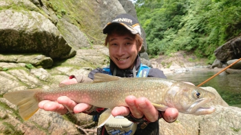 イワナのアベレージが大きくなるまで三時間ほど川ズ通しで歩きます。