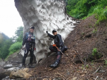 見附川ではお盆を過ぎても立派な雪渓がありました。