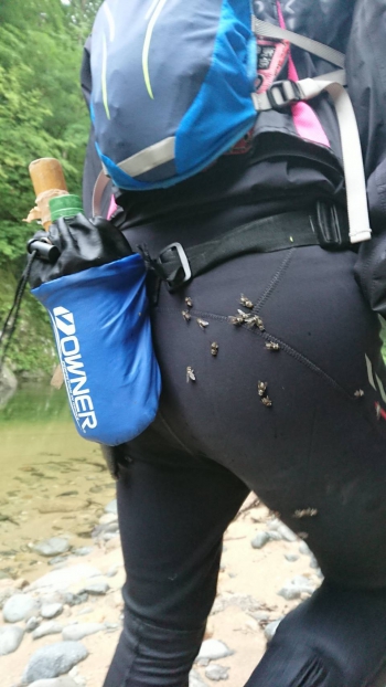 水温は16℃、この川は泳いで移動する場面も多いので水温が高いと助かります。